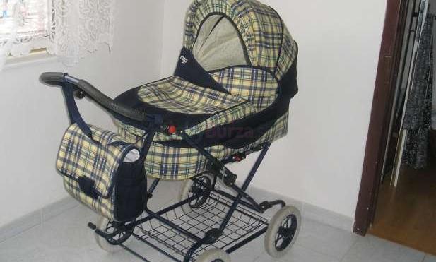 Predám kočík trojkombináciu po jednom dieťati - hlboký, športový a prenosná vanička s ušami. Vo vaničke sa nachádza odnímateľný hygienický návlek. Vanička je priestranná, zmestí sa tam polročné dieťa aj s fusákom. Ku kočíku je prenosná taška a pláštenka. Je nepoškodený vo veľmi dobromstave.